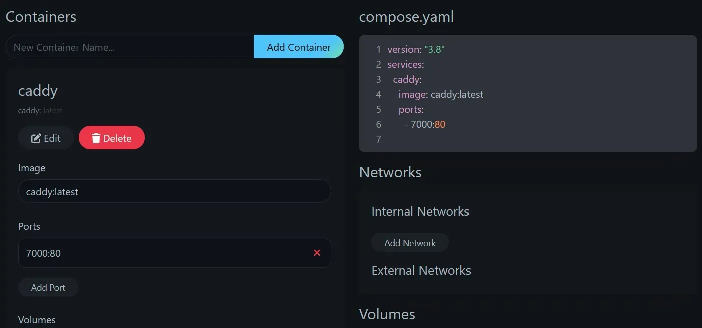 Et voilà l'interface quand vous ajoutez un nouveau compose.
