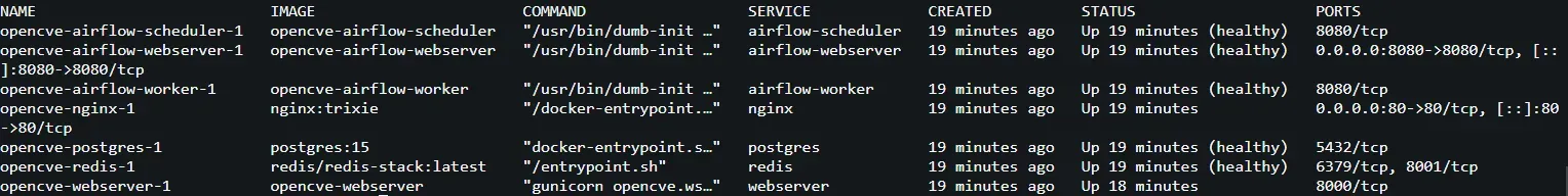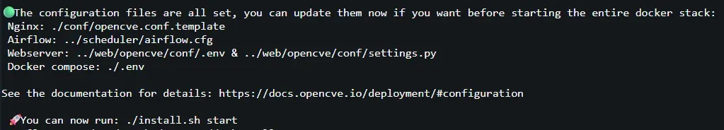./install.shLe script install.sh orchestre l'ensemble de la mise en place : création des conteneurs, initialisation de la base de données, import de la base de connaissances OpenCVE et création du premier compte administrateur.