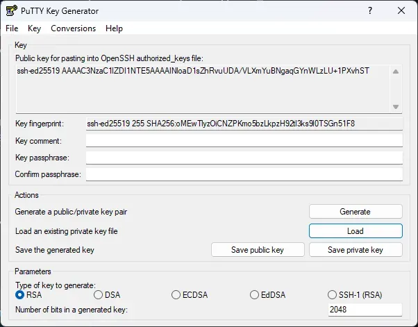 id_ed25519(affiche "All files" pour la voir) - Save private key → enregistre le fichier
