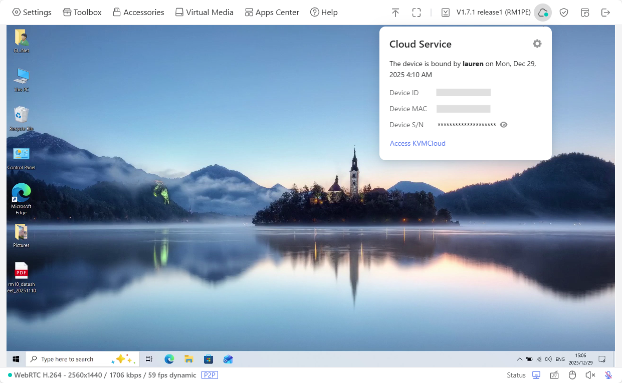 Le cloud GL.iNet est la solution la plus simple à mettre en place : vous créez un compte sur le portail GL.iNet, vous associez le boîtier, et vous y accédez depuis n'importe où via leur infrastructure. Aucune configuration réseau, opérationnel en quelques minutes. Parfait pour un premier test ou pour quelqu'un qui ne veut pas s'embêter. La contrepartie : votre flux vidéo transite par les serveurs de GL.iNet, ce qui pose une question de confiance légitime pour un accès à des machines de production.