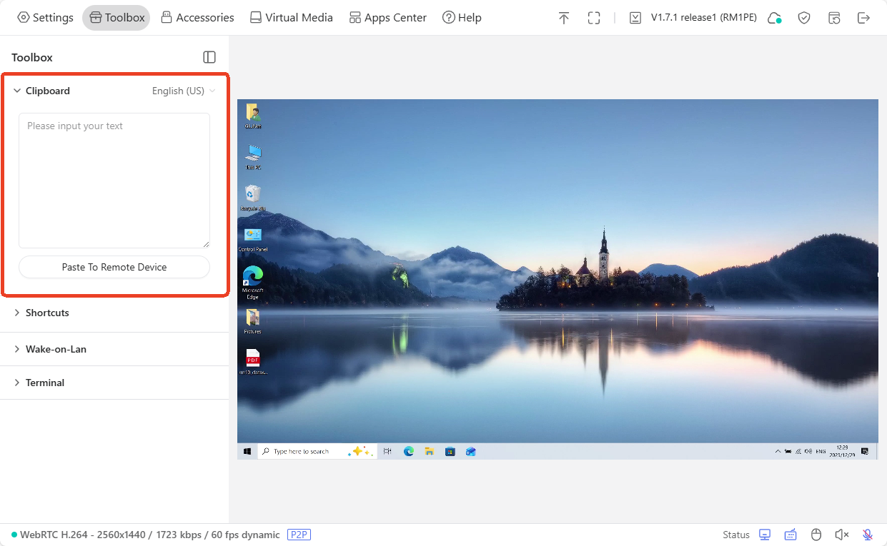 L'interface web est propre et va droit au but. On y retrouve la vidéo en temps réel, les contrôles clavier/souris, le son bidirectionnel, la gestion du stockage interne, les options de connectivité, les raccourcis clavier spéciaux (Ctrl+Alt+Suppr, touches de fonction, séquences d'amorçage) et un presse-papiers pour coller du texte directement sur la machine distante. Particulièrement utile pour les longs mots de passe ou les commandes complexes sans risquer de faute de frappe via le clavier émulé.