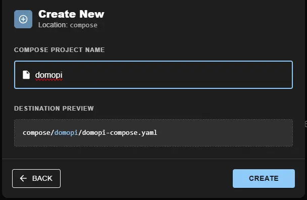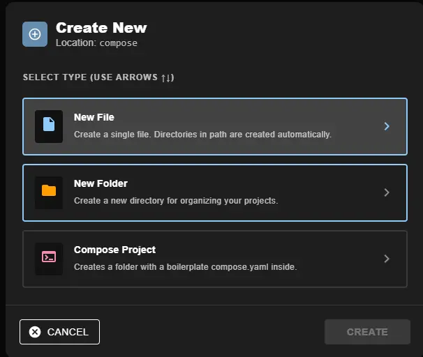 Dockman créera automatiquement un dossier dans votre répertoire de stacks avec le fichier compose. Vous pouvez également créer simplement un dossier ou un fichier (par exemple pour le fichier env)