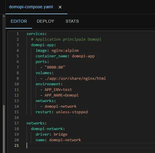Place à l'installation. Créez un fichier compose.yaml avec le contenu suivant :